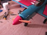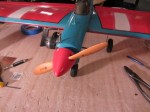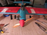 This 1950’s control line aircraft was built in New Jersey about 50 years ago and was shipped to me in Wisconsin for a restoration. The wings were pretty tore up and the old paper was dried and falling apart. Fortunately, after removing the damaged covering, the rest was in pretty good shape. With a little prep and dope, the paper covering shrunk perfectly into place and it is being painted now. The engine compartment and the Enya engine were in pretty rough shape. I removed the engine and completely disassembled, cleaned, and rebuilt it. It spins and compresses just like the day it came out of the factory! After some sanding and prep, I painted the engine compartment and re-installed the engine. I also sanded and repainted the landing gear and installed the original wheels. There is still a little ways to go on matching the paint and getting the finish correct. Unfortunately, during shipping the canopy was smashed. I had to drill a tiny hole, and using a heat gun and tube, blow air into it while heating it to get it to expand. it mostly worked, but the canopy is a little sideways, but 100% better than what it was. I’ll post it in the Aircraft Archive as soon as it is finished. Enjoy the progress so far! (Click on the pictures for a larger viewable gallery)